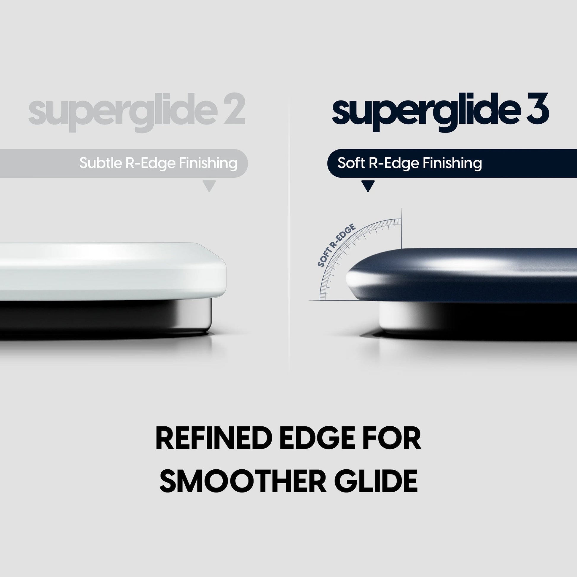 The softly rounded edge design offers smoother wrist and arm movement and reduces any chance of the mouse catching, delivering a noticeably more fluid glide compared to conventional glass mousepads or previous models.A refined precision edge finish, applied to the SuperGlide 3, enhances overall stability and comfort, supporting faster glide and consistent high-level performance.